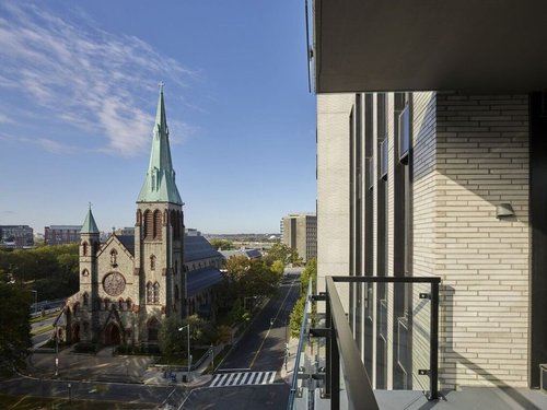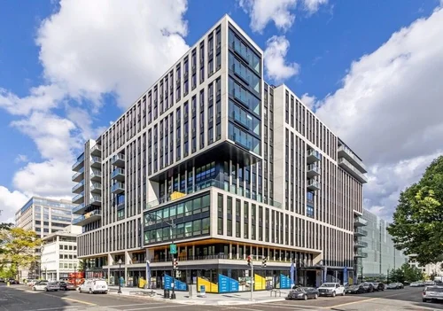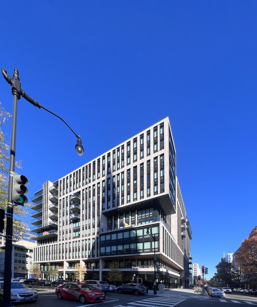 555 E Street is a 12 story mixed-use building wrapping three sides at the end of an urban block. The Citizen+M hotel activates the North side and cantilevers over the sidewalk. The balance of the site is occupied by ground floor retail, residential lobby. Senior living apartments occupy the lower floors and complement the market rate apartments above, amenity spaces are articulated on the second floor and roof.