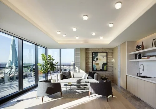 The public spaces of this 12 story Upper West Side Prewar Co-op building were updated by CAS. The work included all new lighting, fire rated wood doors at all apartment entries, wallpaper, carpet and gfrg ceiling coves that incorporate space and access for cable management.